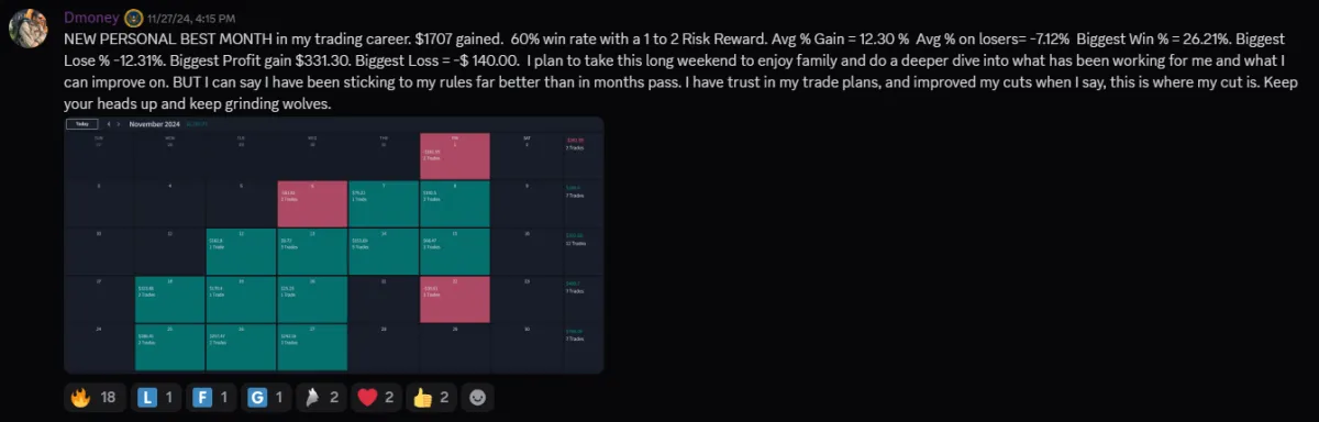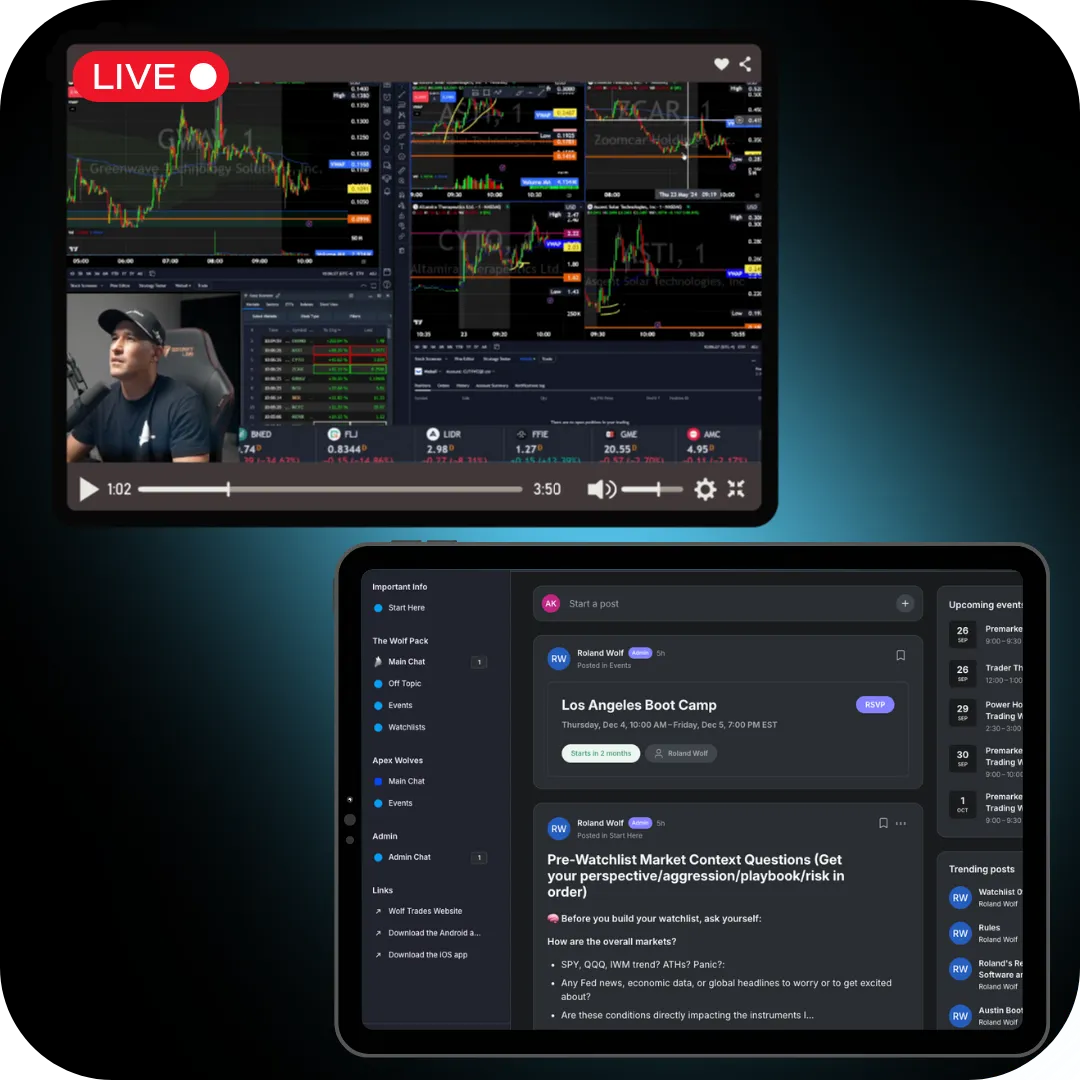 No. Wolf Pack isn’t just about alerts, it’s about skill. You’ll learn to plan, execute, and manage your own trades using the same setups and playbook I use every day. Although we were hosted on Discord for nearly a decade, we've shifted to a private platform where everything is under one roof - the live calls, the live chat, alerts, courses, event calendar, and more.